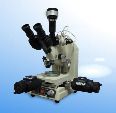 IM系列工具顯微鏡能方便地讀取千分表頭示值,測量工件的孔徑、孔距等尺寸以及角度、使用任選的目鏡組還能檢驗螺紋以及齒輪形狀等。設計非常緊湊、重量輕、最適合設置在加工現場受到限制的場所.